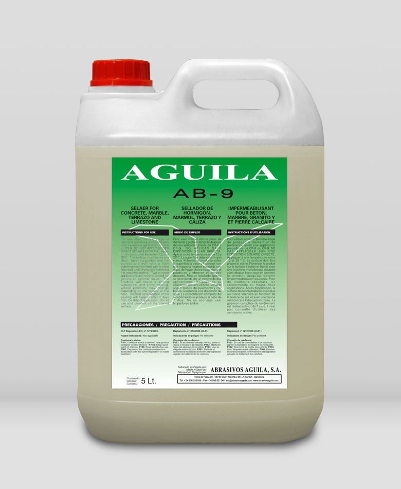 לשימוש לאחר השלב האחרון של ליטוש יהלומים ועדיף לאחר יישום קודם של AB-9. אינו חל תחת חשיפת שמש ישירה. החל בטמפרטורות שבין 12 ו 28 השטח חייב להיות יבש ונקי. רסס המוצר על פני השטח ואפשר להבריק עם מכונת פוליש מצוידת עם סקוטש לבן , עד ייבוש והשיג האיטום הנדרש. שכבה שנייה עשויה להיות נחוצה כאשר מורחים על משטחים מאוד נקבוביים. המוצר ישאיר ציפוי עמיד למים ומבריק חזק, בעוצמה אשר עשוי לשנות בהתאם את המרקם של הרצפה. האפקט הסופי של הציפוי יקרה אחרי 7 ימים ממועד המריחה. אין להשתמש בחומרי ניקוי חומצה על פני שטח המטופל