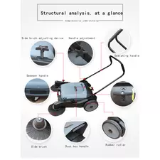 מטאטא מכני ידני דגם חדיש A70 BAIYUN שטח ניקוי: 70 x92 ס"מ מיכל איסוף: 40 ליטר יעילות: 3600 מ"ר / שעה אופן פעולה: דחיפה ידנית - מכני מתאים למחסנים, מבני תעשייה, מוסכים ועוד עומד בסטנדר של תקנים אירופאיים CE מידות: 104x79x130 ס"מ משקל: קג 24