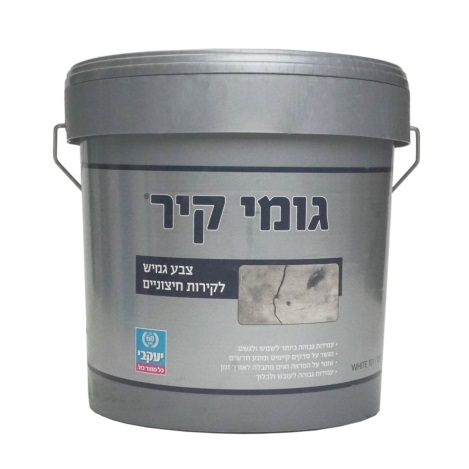 לגומי קיר לבן וגמיש לצביעה של קירות חיצוניים ישנם יתרונות רבים: 100% ציפוי בלתי חדיר למים המאפשר לקיר לנשום, 100% ציפוי גומי גמיש, מתאים למזג האוויר הישראלי בכל עונות השנה: הגנה מפני קרני השמש, לחות, רטיבות וגשם , עמידות לאורך זמן – עד 10 שנים, קל ליישום, לשימוש חיצוני בלבד. כושר כיסוי: 200-300 גרם/ למ”ר (בשכבה אחת)